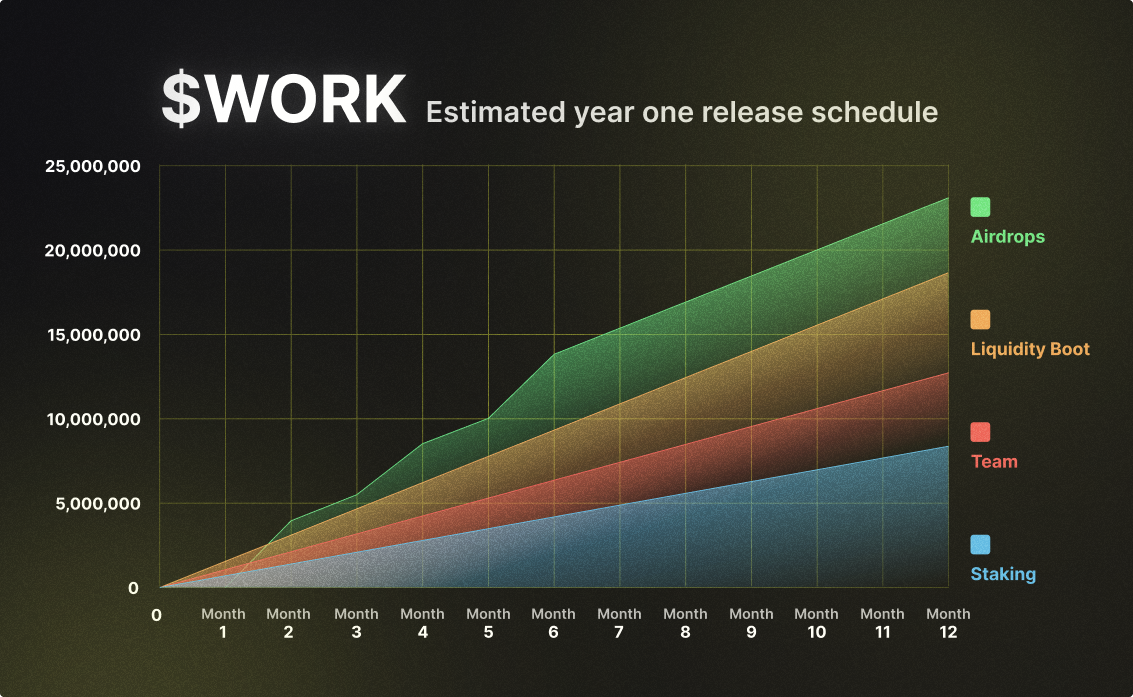 By the end of the first year, we'll have achieved a fair distribution and released the first $WORK utilities. We will then continue to work on introducing even more new ways to use and earn $WORK across our platform.